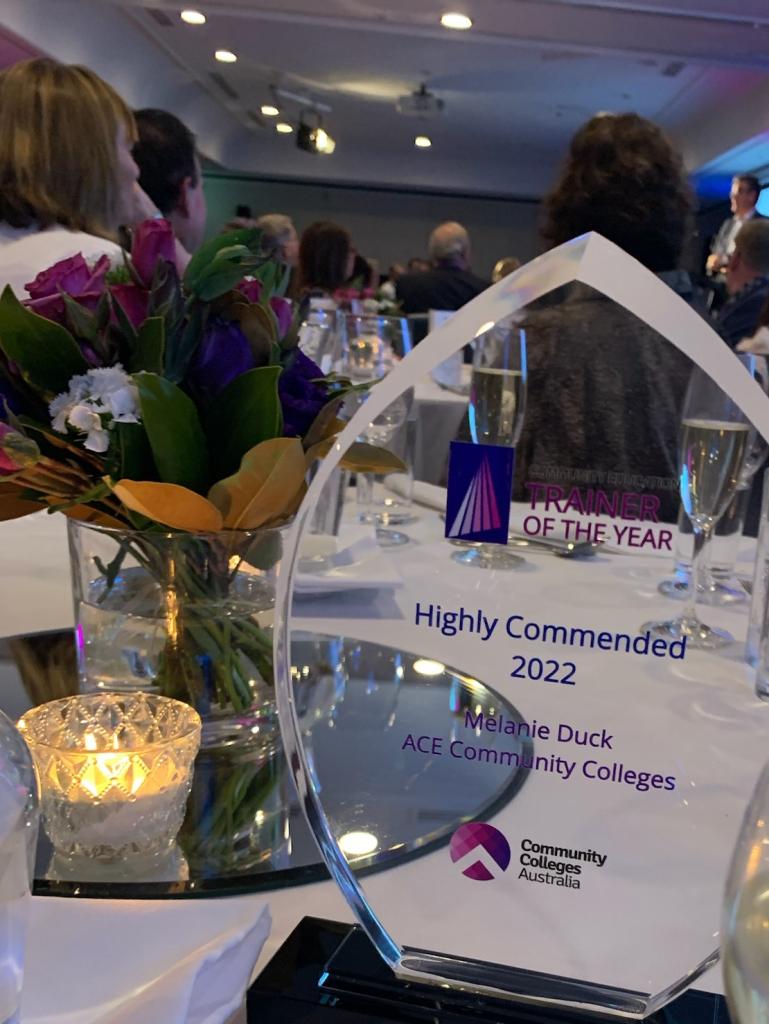 The wonderful ACE Management team + Board Chairperson Allan have all been at the Community Colleges Australia conference this week, celebrating Australian community education successes, achievements and discovering new possibilities. Plus, cheering our finalist Melanie Duck on at the inaugural Trainer of The Year awards.